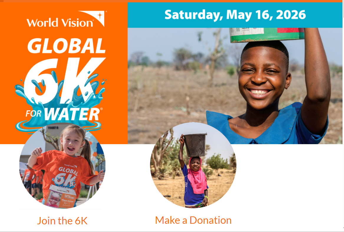2026 World Vision Global 6K for Water on Sat, May 16 at 9:30am-12pm at Monrovia Recreation Park, 620 S Shamrock Ave, Monrovia. You are welcome to join the group 6K event or may also complete the 6K individually or as a group at another time or location. Registration Link: https://tinyurl.com/FEC-GlendaleFee:Adult $50/ Youth (18 and under) $25. Questions? Email daric-john.lee@outlook.com.